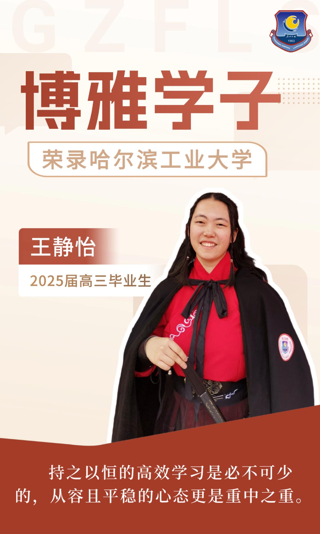 今辞蕉水之滨,赴北国冰城。无论行至何方,母校所赠“勤学慎思”精神,都为我心底不灭的明灯。心之所向,素履以往,祝学弟学妹们能在广州外校这栖凤之地遨游学海,不负韶华!
