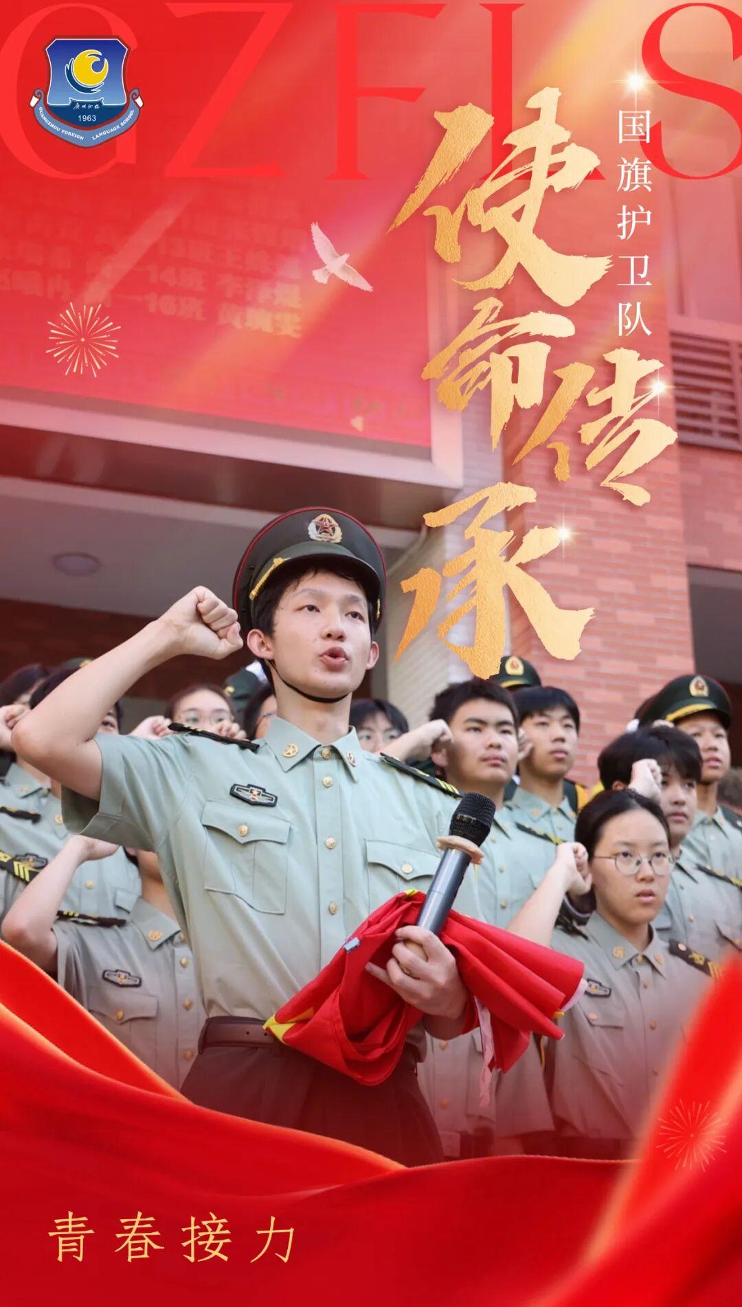 青春接力,使命传承。广州外校国旗班将继续用挺拔的身姿和无悔的青春,守护这片红色,守护心中的信仰。一代又一代国旗护卫者,以青春的脚步丈量校园,以坚定的目光注视星辰。他们用汗水灌注仪仗之魂,用信念托举信仰之旗。国旗班的故事,仍在续写;护旗的精神,将代代传承。