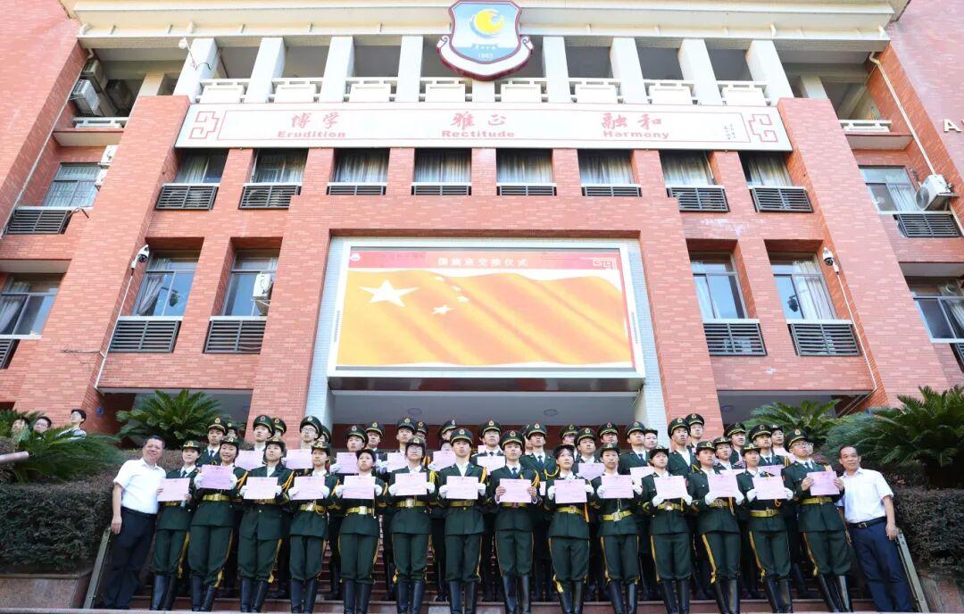 林伟洪书记和彭斌校长为国旗护卫队队员颁发荣誉证书