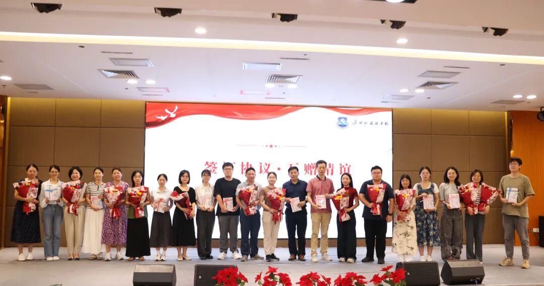 在庄重而愉快的氛围中,仪式进入了最核心的环节——2025年师徒签订协议。一纸协议,签下的不仅是一份承诺,更是一份沉甸甸的责任与深深的缘分。随后进行的互赠礼物环节更是温情满满:徒弟们向师傅敬献鲜花,表达崇高的敬意与诚挚的谢意;师傅们则回赠班主任专业书籍,寄托着对徒弟快速成长、专业进步的殷切期盼。一赠一还之间,搭建起了师徒间深厚情谊的桥梁。