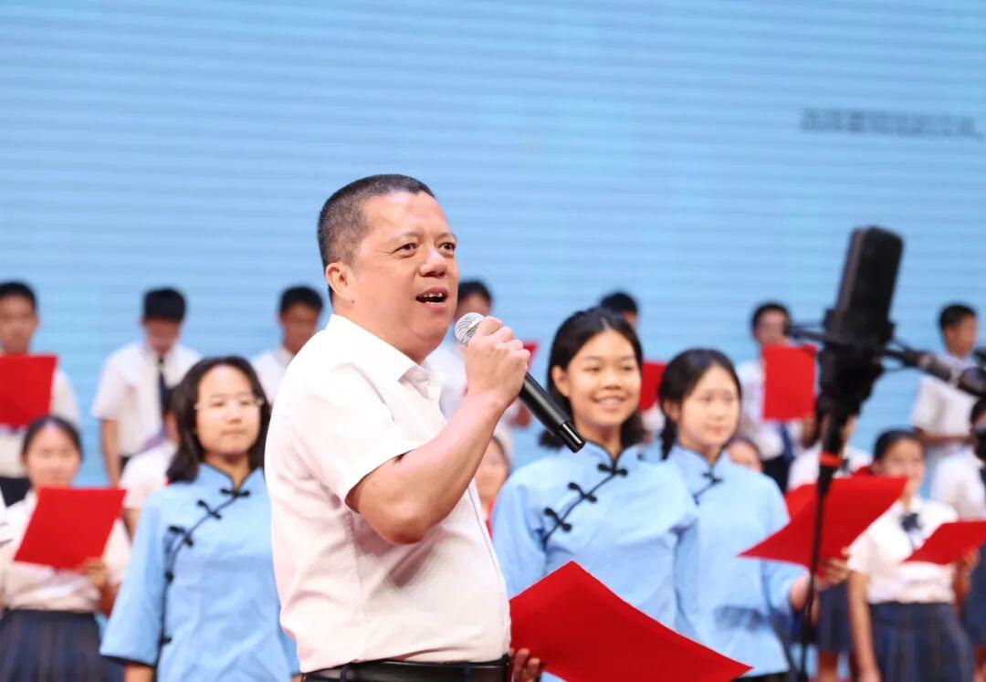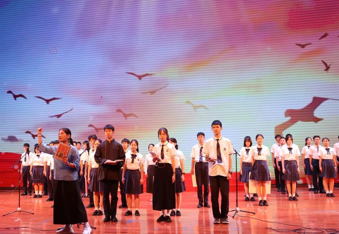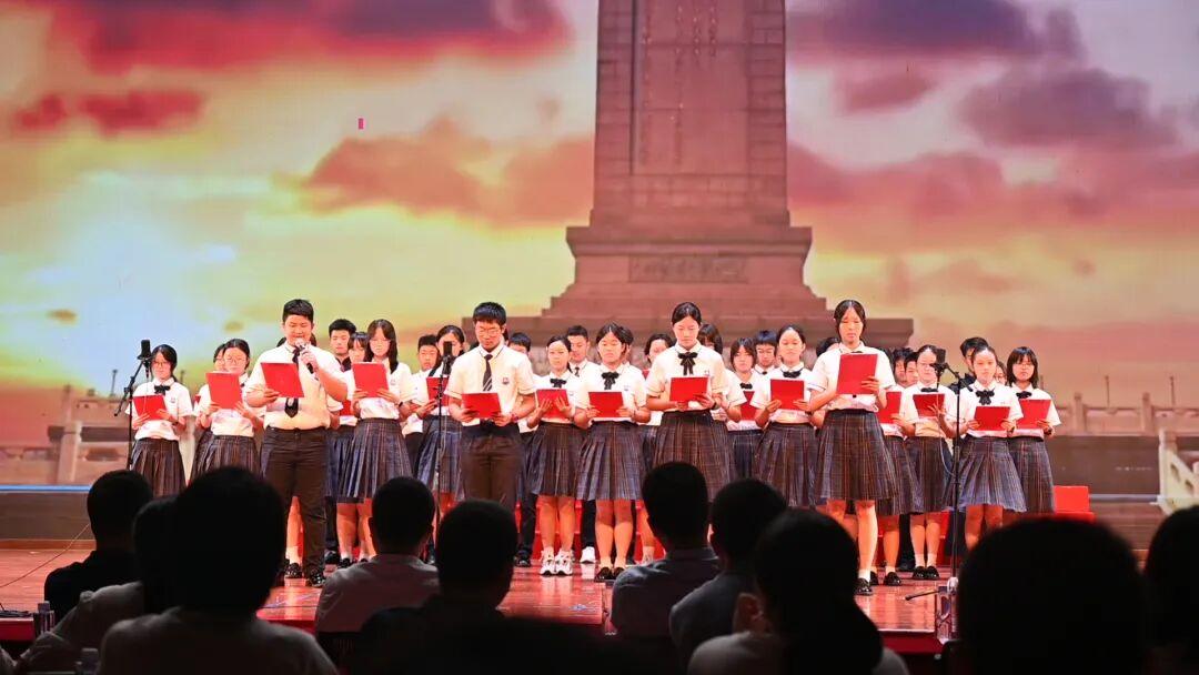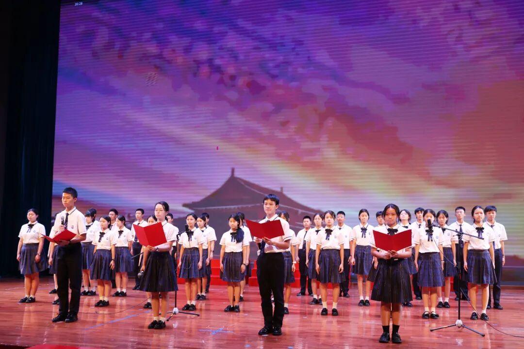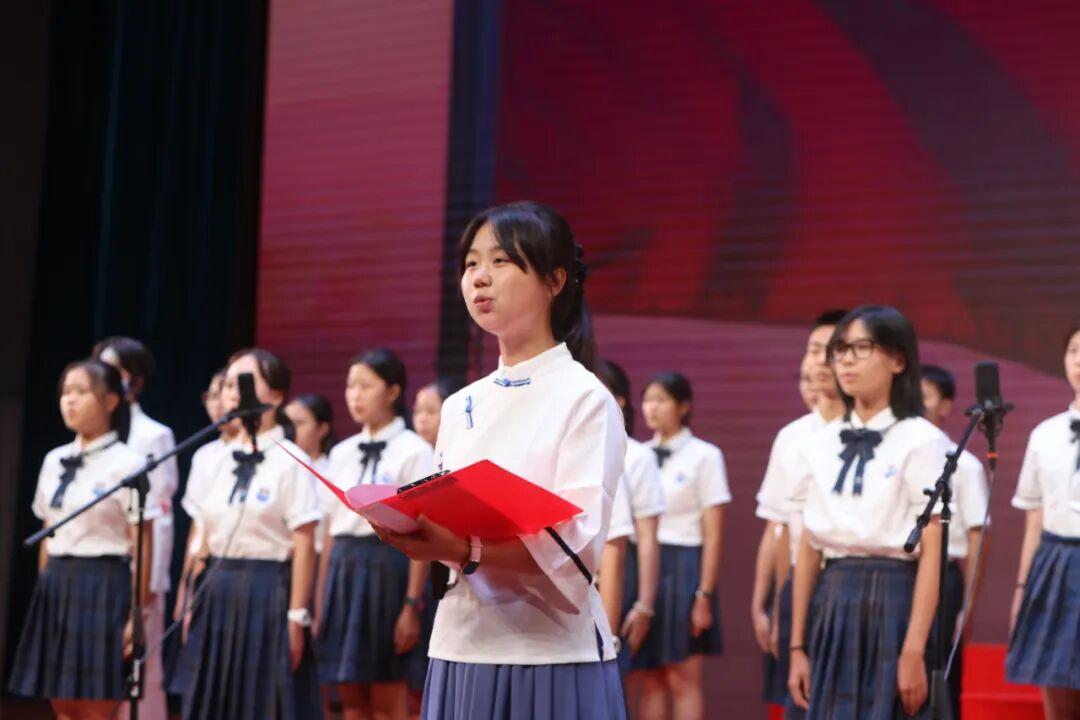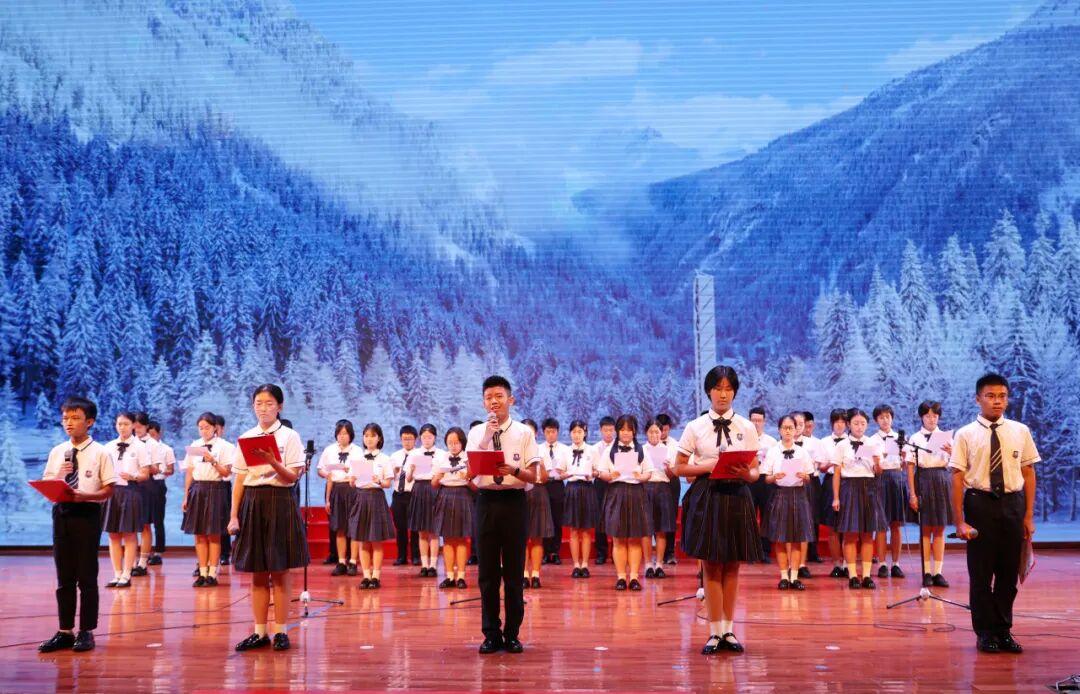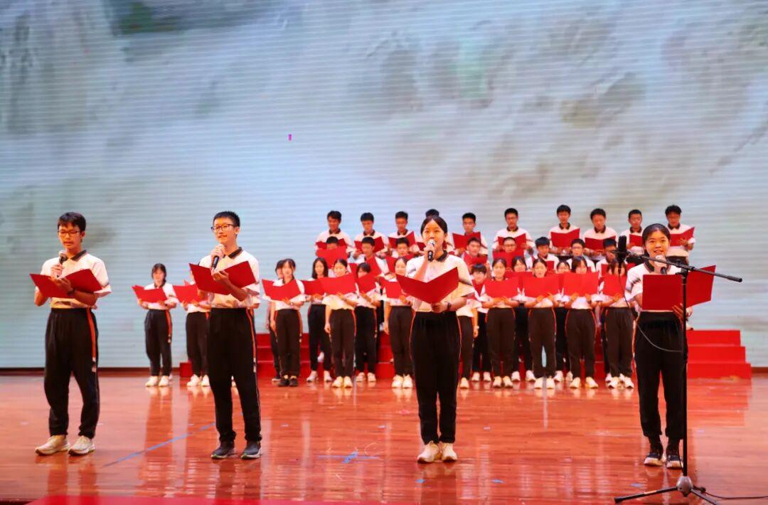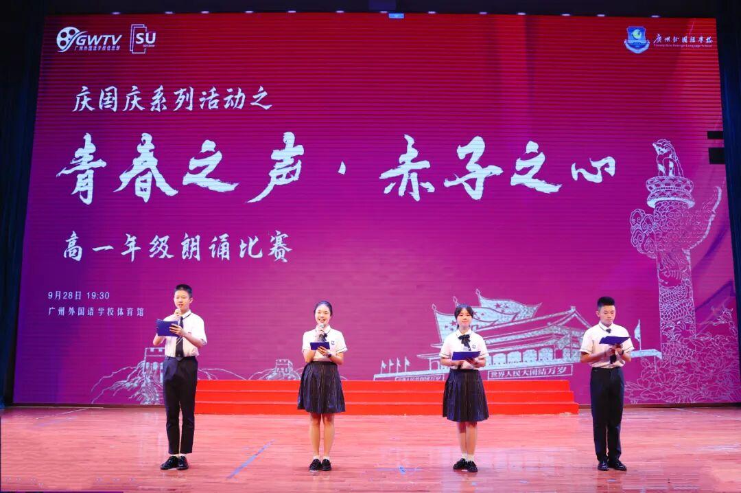 为弘扬爱国主义精神,厚植家国情怀,提升语言表达与艺术素养,9月28日晚,广州外国语学校在体育馆隆重举行“青春之声·赤子之心”迎国庆爱国主题朗诵比赛。本次活动由德育处、高一年级组联合主办,高一语文备课组与年级学生会协办,全体高一班级齐聚一堂,以声传情、以诗言志,呈现了一场精彩纷呈、感人至深的文化盛宴。