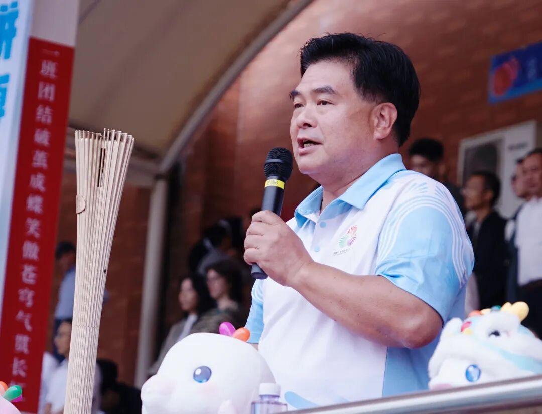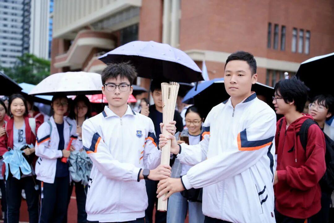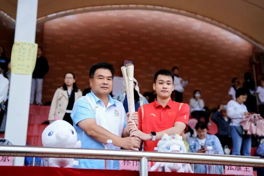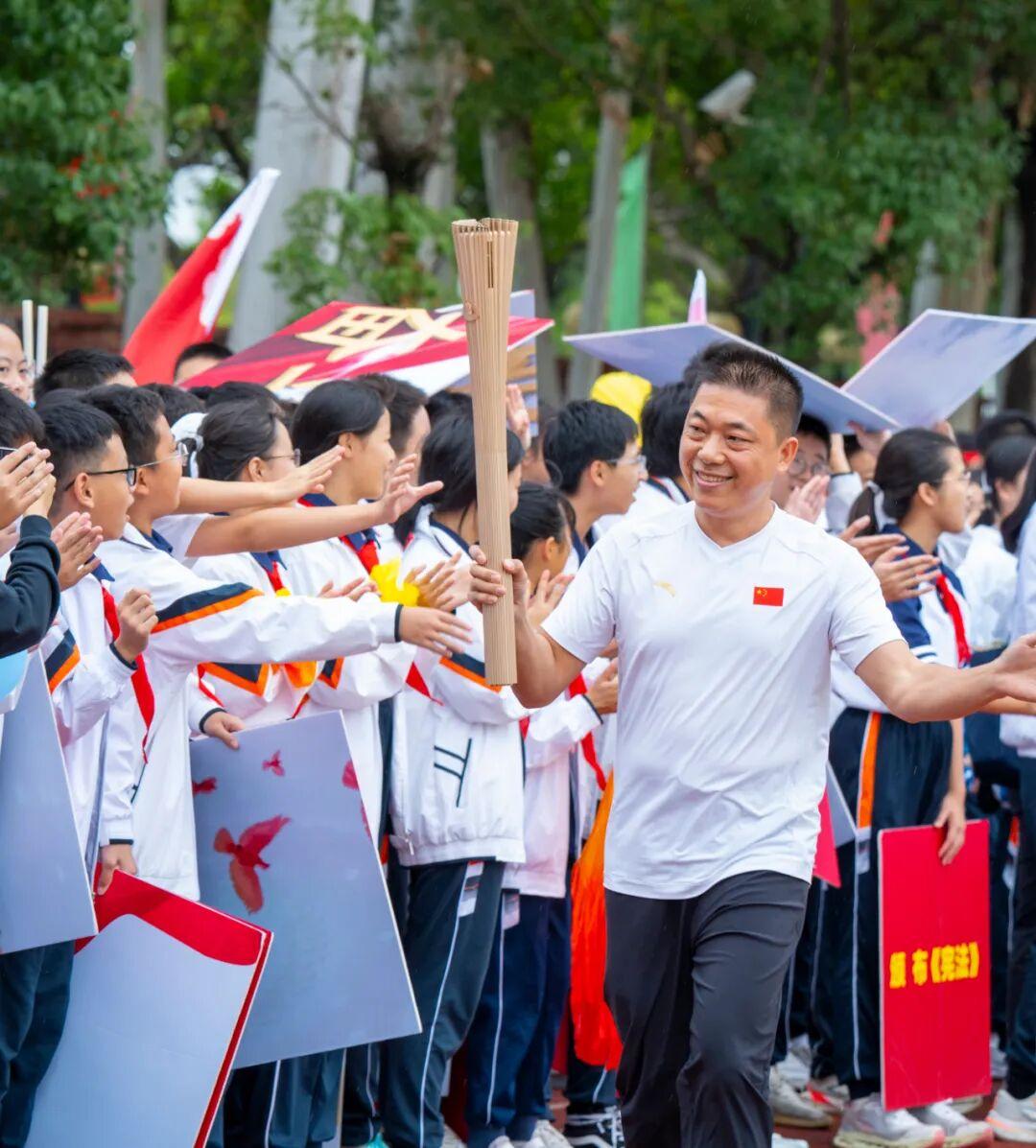 薪火相传,点亮梦想。本次运动会特别设置了象征性火炬传递环节。火炬由胡伟京先生与我校林伟洪书记一起交由第一棒火炬手——跳水奥运冠军张雁全。随后,火炬在冠军运动员、学校领导、学生、教师和家长代表手中依次传递,象征着体育精神的延续与传承。火炬不仅点燃了赛场,更点燃了每一位运动员心中的斗志与希望。