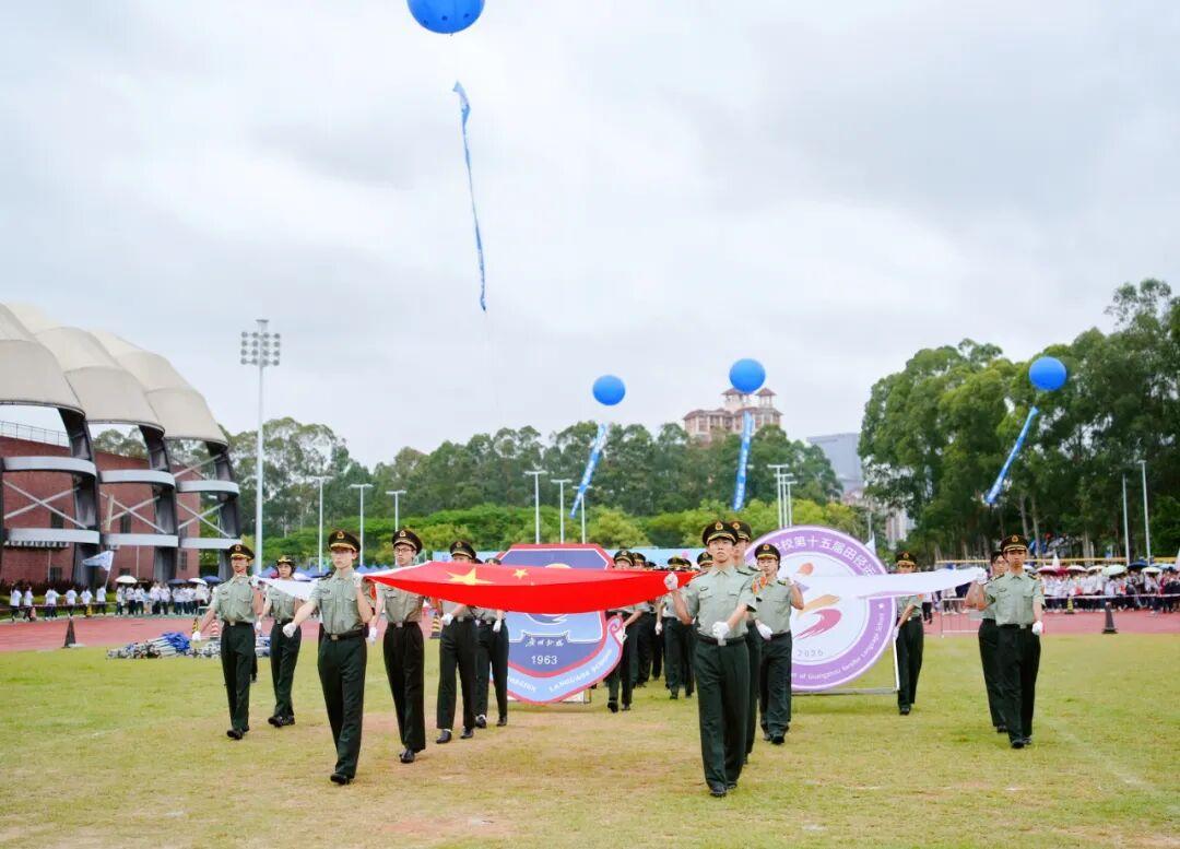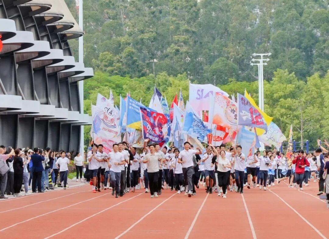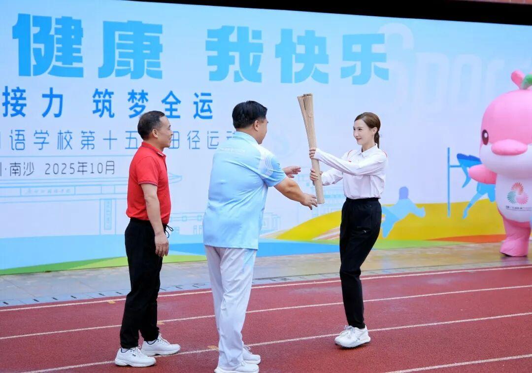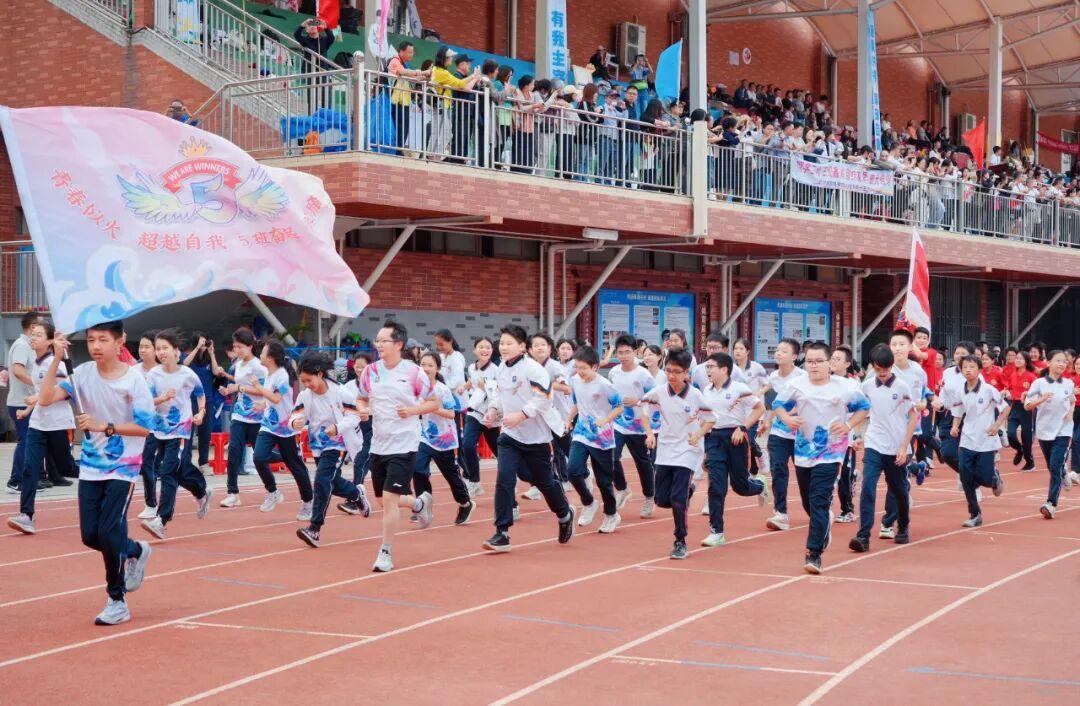 这一天,博雅园内彩旗飘扬,乐声激昂,运动会开幕式正式拉开帷幕。广州外国语学校校领导、集团校领导,以及特邀嘉宾——十五运会和残特奥会火炬传递工作指挥部专家组组长胡伟京先生、跳水奥运冠军张雁全先生、蹦床世界冠军蔡琪子女士等共同出席,见证这一激动人心的时刻。