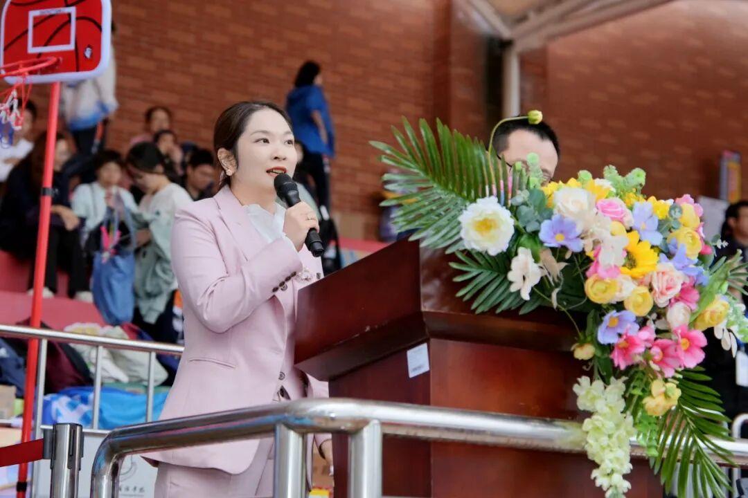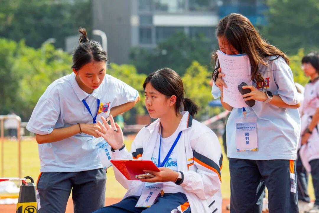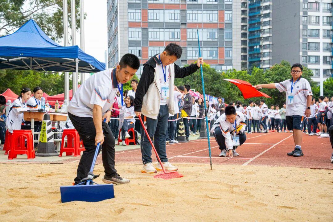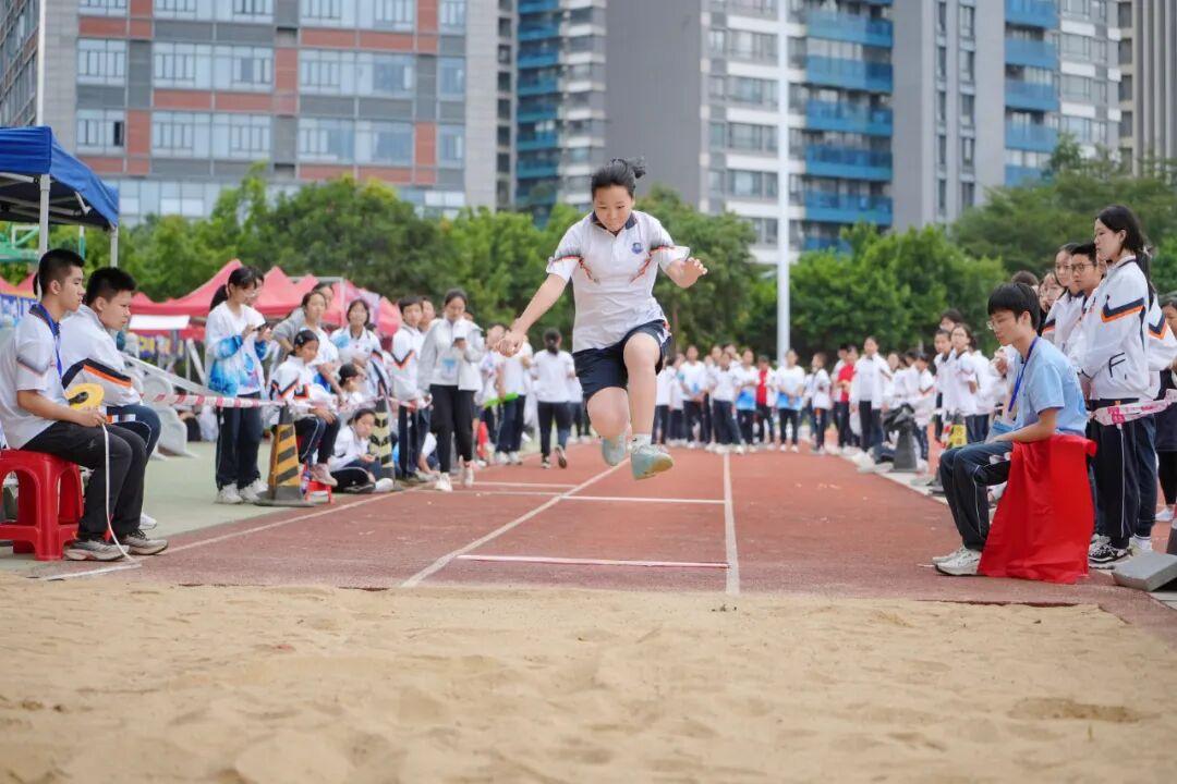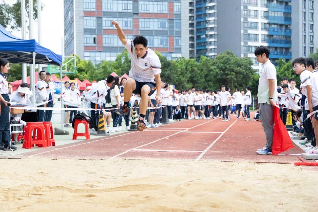 这一天,博雅园内彩旗飘扬,乐声激昂,运动会开幕式正式拉开帷幕。广州外国语学校校领导、集团校领导,以及特邀嘉宾——十五运会和残特奥会火炬传递工作指挥部专家组组长胡伟京先生、跳水奥运冠军张雁全先生、蹦床世界冠军蔡琪子女士等共同出席,见证这一激动人心的时刻。