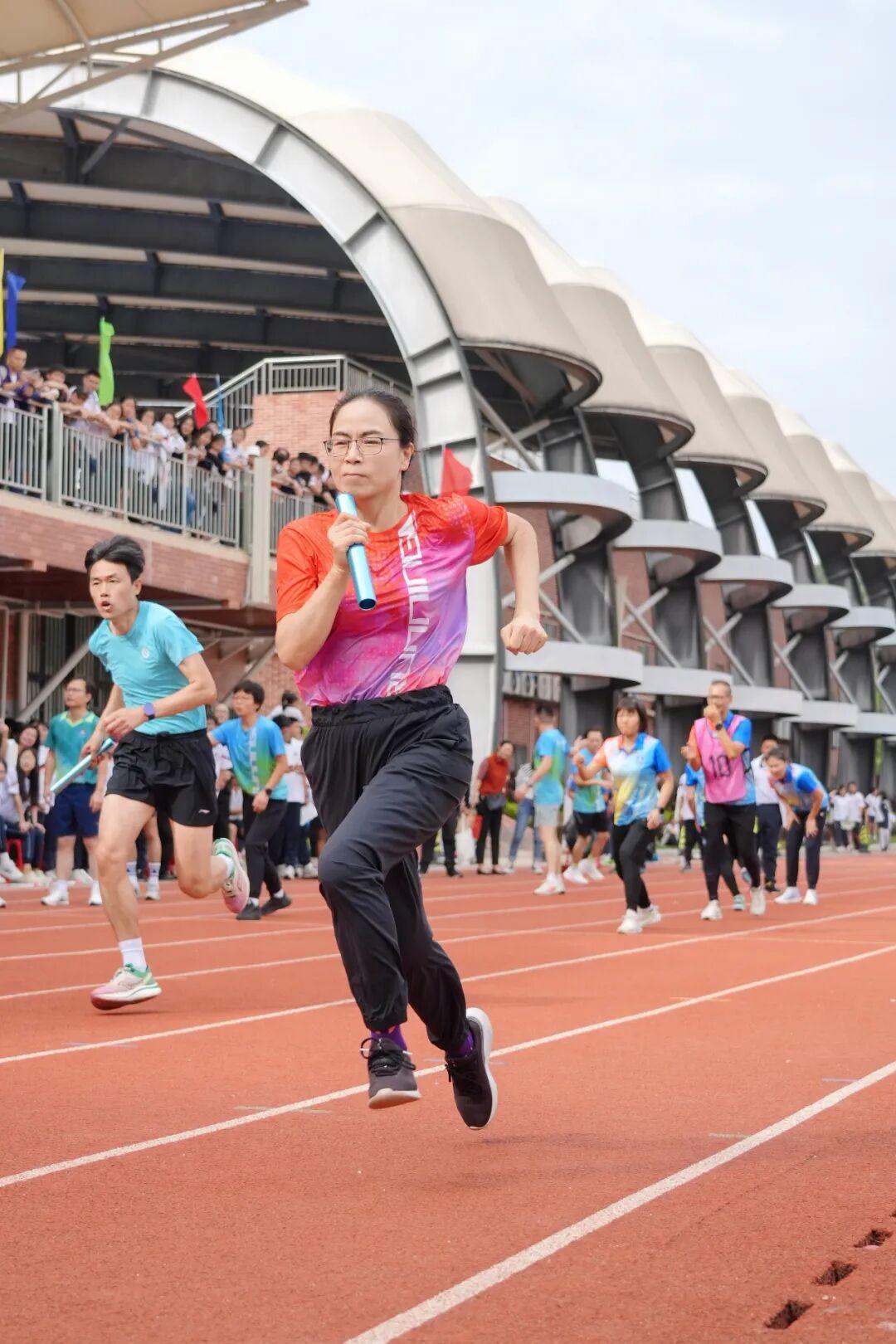 跑道上,看点十足的系列接力赛点燃全场,为赛场增添了无尽的欢乐与温情。集团校教师们奋勇争先,不仅跑出了速度与激情,更跑近了师生距离,展现了广州外校教育集团全体教职工的活力与风采;家长代表队身影飞驰,尽显家校共育的默契与风采;集团校学生代表队,则用风驰电掣的速度完美诠释了青春风采。