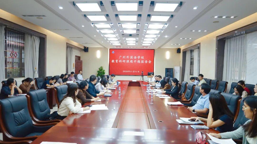 11月11日下午,广州外国语学校会议室内高朋满座、气氛热烈,学校2025年度教育科研课题开题报告会在此举行。我校彭斌校长、李伟副校长,以及华南师范大学姚静博士,区教育研究院语文教研员籍欢欢老师、生物教研员郑培安老师等专家莅临指导。四个区级课题与四个省级课题的负责人及课题组成员共计50余人齐聚一堂,共话科研新篇。