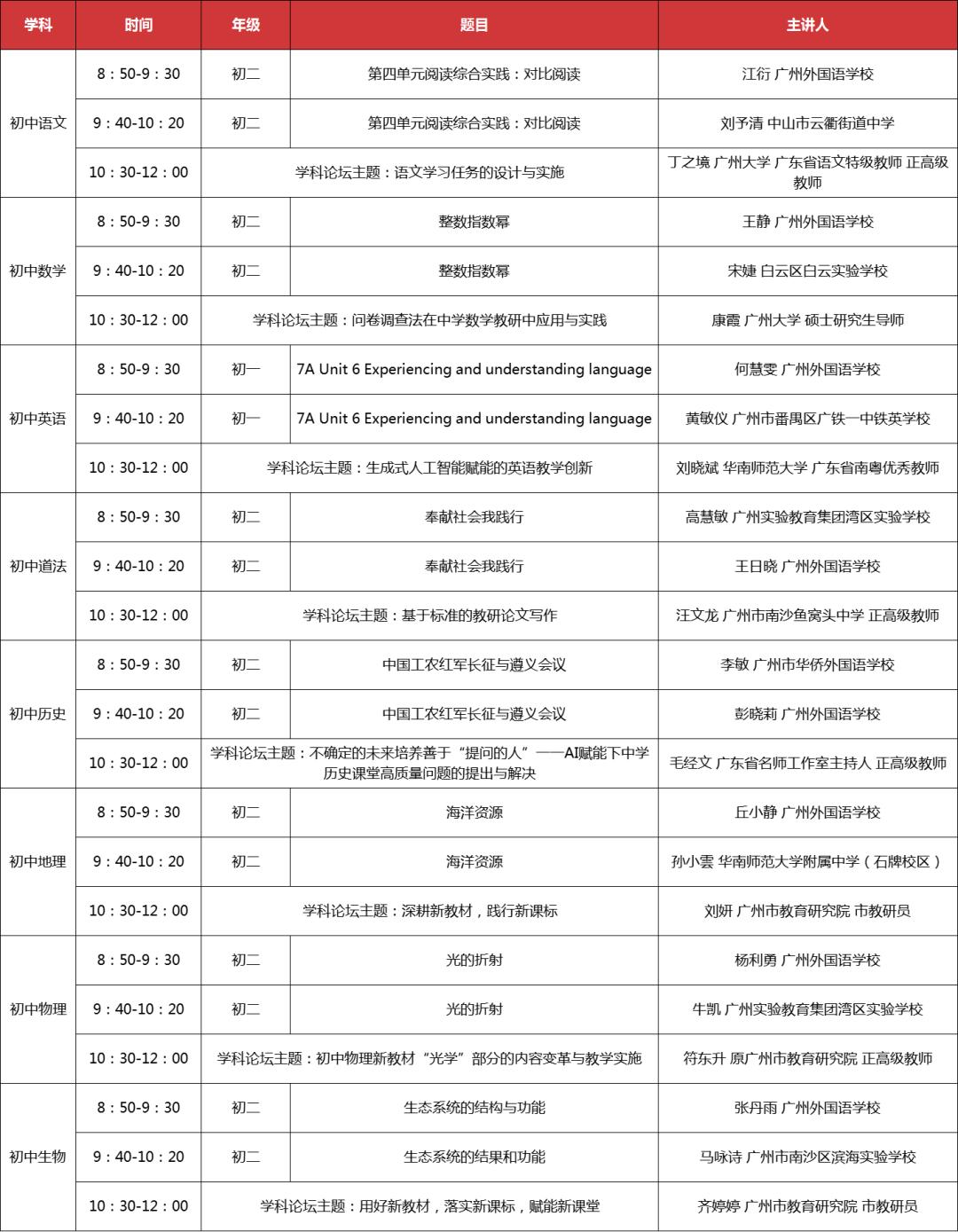 附件2:广州外国语学校2025年教学开放日授课和讲座安排